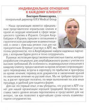 Важность этой выставки для Азербайджана была огромна настолько, что даже сам президент Азербайджана - Ильхам Гейдар оглы Алиев открывал выставку туризма. Но эта она была важна не только для стороны Азербайджана, а также и для нас. Мы приобрели новых партнёров, которые знают, что лечение в Израиле занимает лидирующие позиции в сфере мировой медицины. До